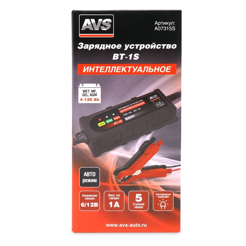 Зарядное устройство для автомобильного аккумулятора AVS BT-1S (1A, 20W) 6/12V
