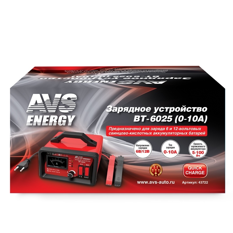 Зарядное устройство для автомобильного аккумулятора AVS BT-6025 (10A) 6/12V