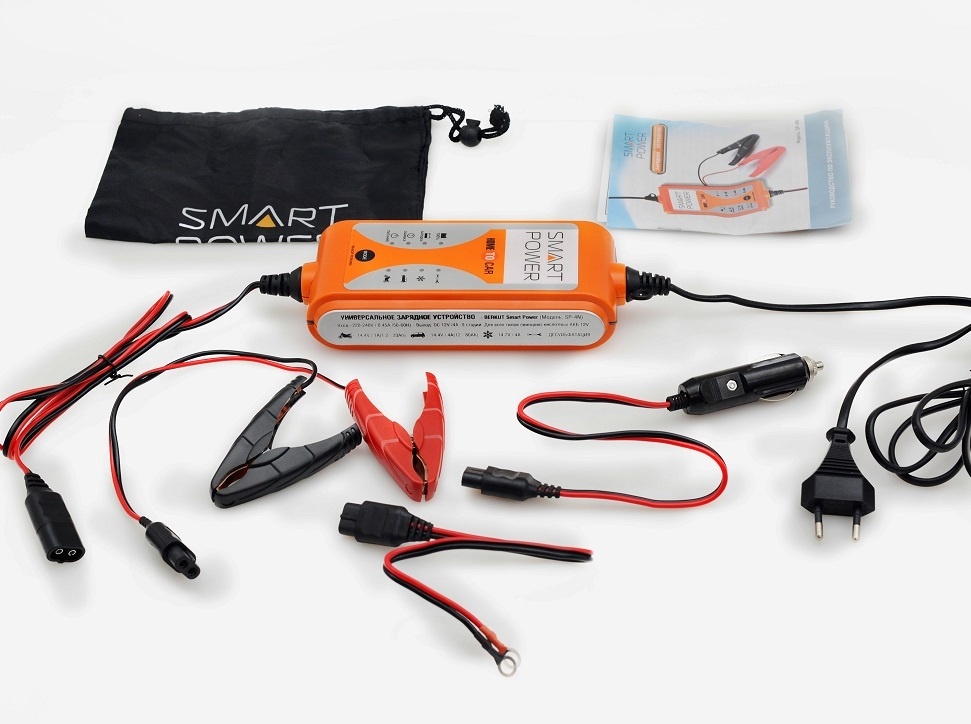 <p>Портативное универсальное зарядное устройство BERKUT Smart Power SP-4N предназначено для обслуживания и зарядки всех типов свинцово-кислотных батарей емкостью до 80 А*ч и напряжением 12 В. Питание организуется от бытовой сети переменного тока 220 В. Главная особенность SP-4N — полная автоматика. Необходимо лишь задать подходящий режим, и устройство все сделает само. На выбор четыре режима работы: зарядка АКБ мотоцикла, зарядка АКБ автомобиля, зимняя зарядка автомобильного аккумулятора и десульфатация (восстановление) аккумулятора.</p>
