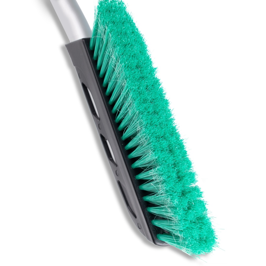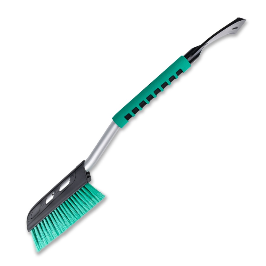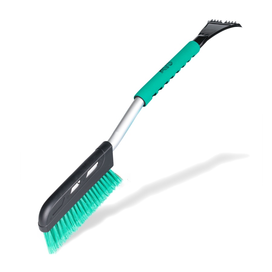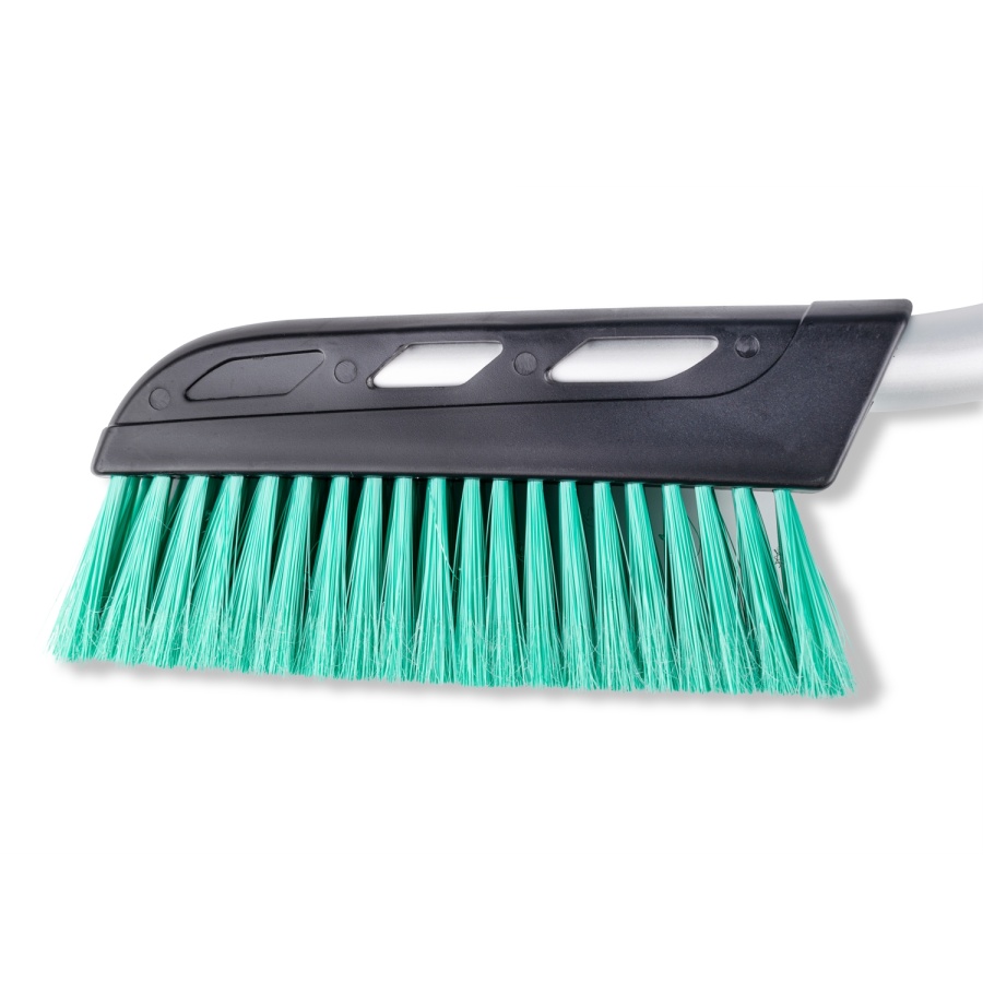 Мини щетка - сметка с распушенной щетиной для очистки снега, с удобной изогнутой ручкой для более тщательной и быстрой очистки, с мягким спонжем для комфорта рук и со скребком с зубьями для удаления обледенения.